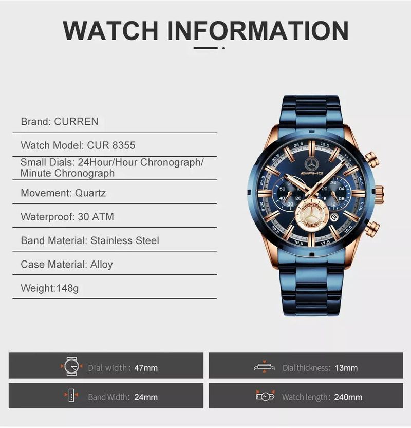 Vlastnosti pánskych hodiniek Mercedes-Benz: